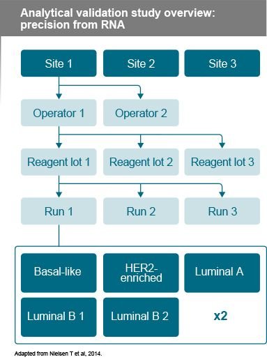 Amaç: Nitelikli klinik laboratuvarlarda kullanıldığında Prosigna'nın analitik sağlamlığının 2 yönünü değerlendirin: dokudan başlarken tekrarlanabilirlik ve RNA'dan başlarken kesinlik